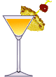 【デコレーション】カットパイナップル、マラスキーノチェリーをカクテルピンに刺してグラスの縁に飾る